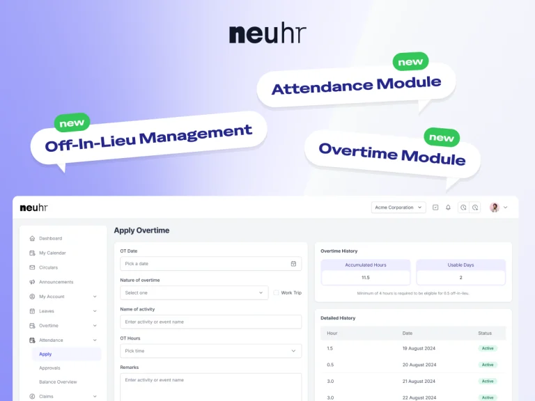 NeuHR Version 2.5.0: Powering Smarter HR with Built-In Attendance & Off-In-Lieu Management